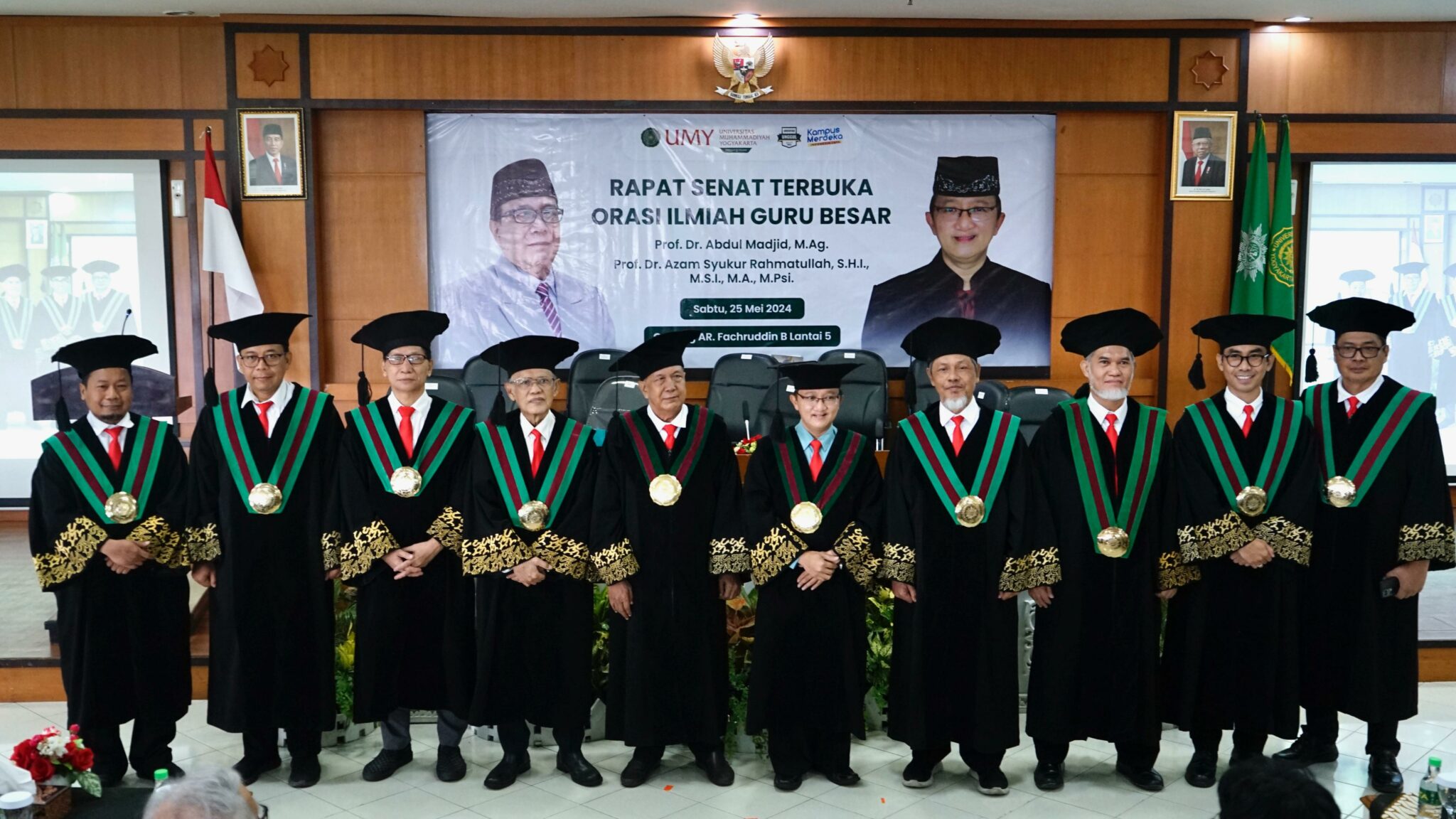 Universitas Muhammadiyah Yogyakarta (UMY) kembali menambah dua guru besar. Mereka adalah Prof Dr Abdul Madjid, MAg dan Prof Dr Azam Syukur Rahmatullah, MSI MA MPsi. Hasil penelitian mereka dipaparkan dalam agenda Rapat Senat Terbuka dan Orasi Ilmiah Guru Besar UMY, Sabtu (25/05/2024). Hal ini sebagai tahap akhir dalam pengukuhan guru besar yang merupakan jabatan akademik tertinggi.