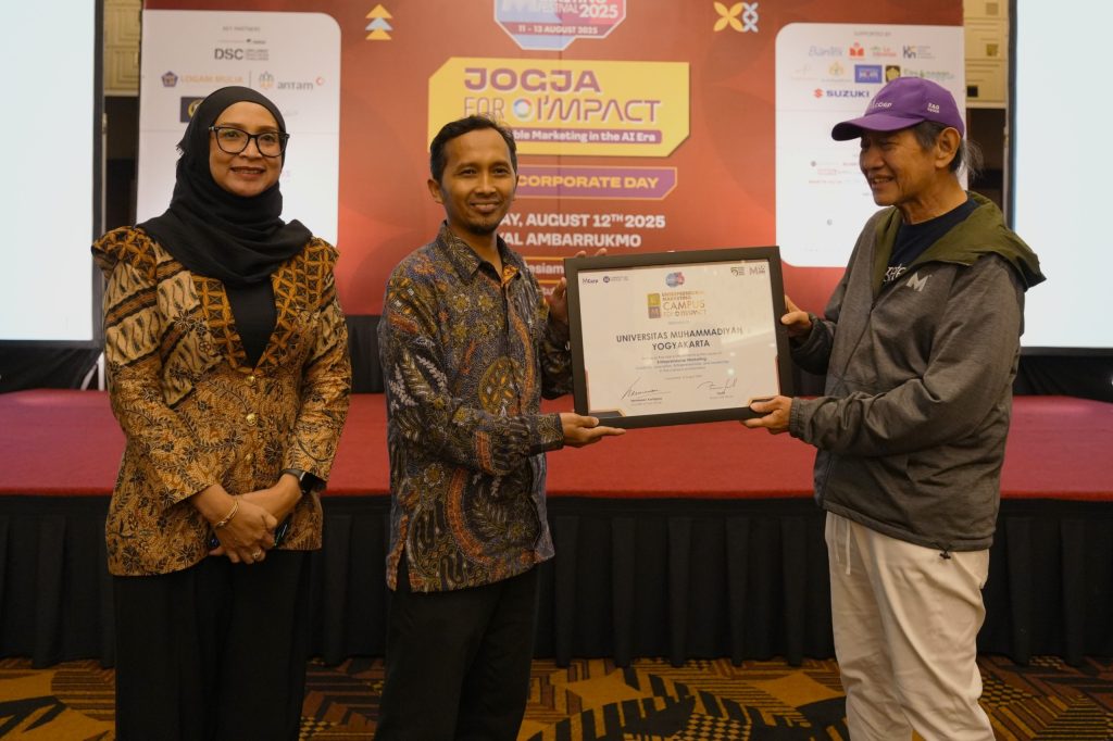 Universitas Muhammadiyah Yogyakarta (UMY) kembali mencatatkan prestasi membanggakan. Pada ajang Jogja Marketing Festival 2025: Jogja for Impact yang berlangsung di Hotel Royal Ambarrukmo, Selasa (12/8), UMY berhasil meraih Campus Entrepreneur Marketing Award.