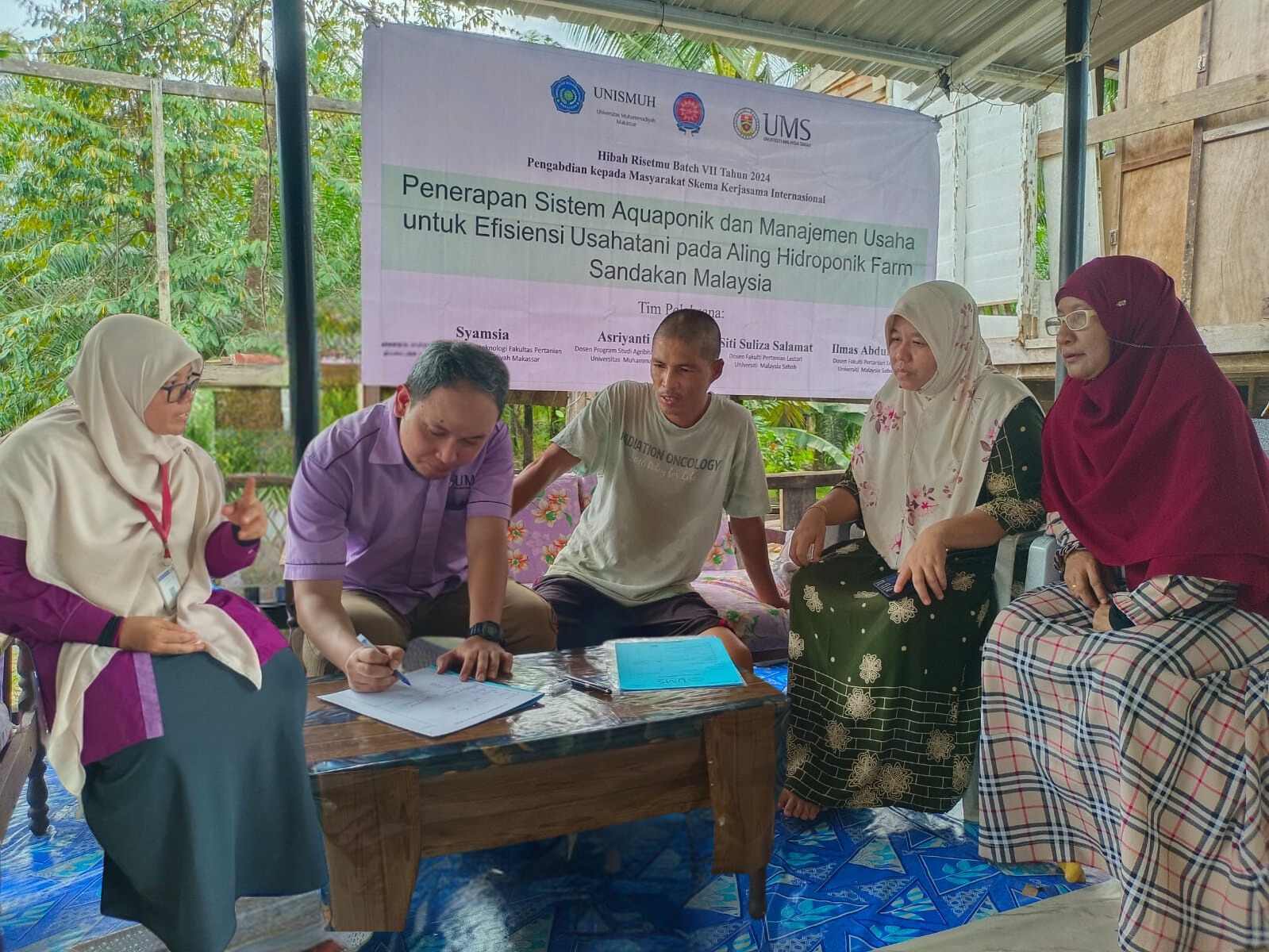 Hari kedua, Ahad (26/05/2024) kegiatan pelatihan dan pendampingan pencatatan usaha pada mitra Aling Hidroponik Farm. Dalam kegiatan ini mitra diajarkan bagaimana cara melakukan pencatatan usaha, menghitung modal usaha, biaya tetap, biaya tidak tetap serta menghitung kelayakan usaha. Ketua tim pengabdian, Dr Syamsia, menyampaikan harapannya agar kegiatan ini dapat meningkatkan keberdayaan petani di Sandakan. “Dengan menerapkan teknologi aquaponik dan perencanaan usaha yang baik, kami berharap petani dapat meningkatkan produksi dan meraih keuntungan yang lebih besar,” ujarnya.