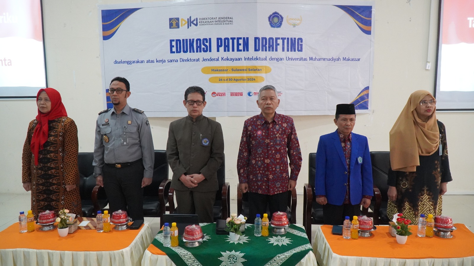 Universitas Muhammadiyah (Unismuh) Makassar bekerjasama dengan Direktorat Jenderal Kekayaan Intelektual Kementerian Hukum dan HAM (Kemenkumham) menggelar kegiatan Edukasi Paten Drafting, Senin – Jumat, (26-30/08/2024). Pembukaan kegiatan tersebut digelar di Aula Fakultas Ilmu Kesehatan dan Ilmu Kedokteran (FKIK) Unismuh Makassar, pada Senin, (26/08/2024).
