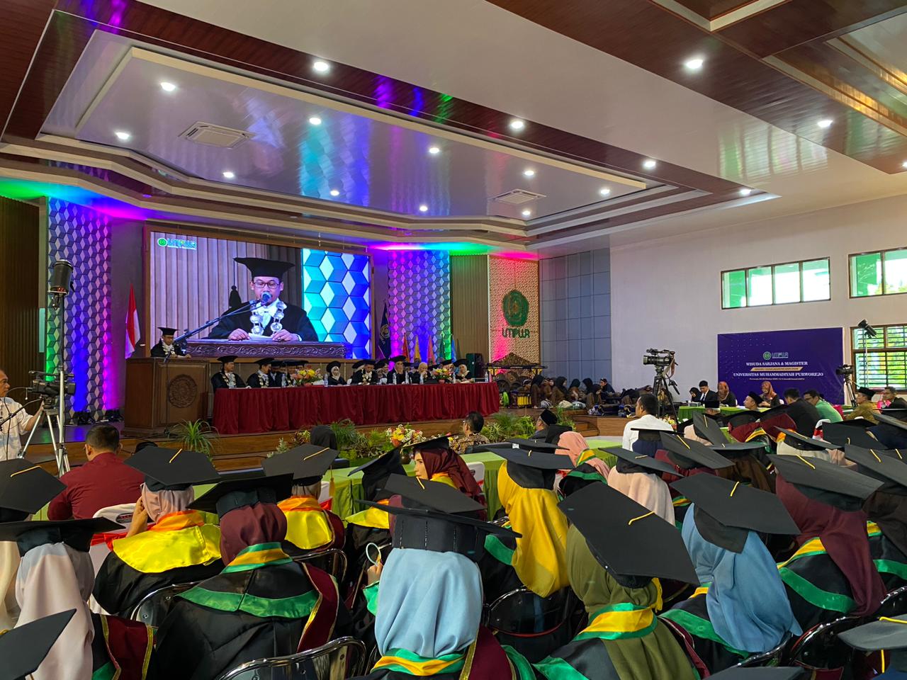 Wisuda berlangsung khidmat dan penuh kebanggaan, dihadiri oleh jajaran pimpinan universitas, Senat, dosen, orang tua wisudawan, serta tamu undangan dari berbagai instansi mitra. Termasuk di antaranya Majelis Diktilitbang PP Muhammadiyah, Bupati dan Forkompimda Kabupaten Purworejo, perbankan, dan pimpinan perguruan tinggi di wilayah setempat.