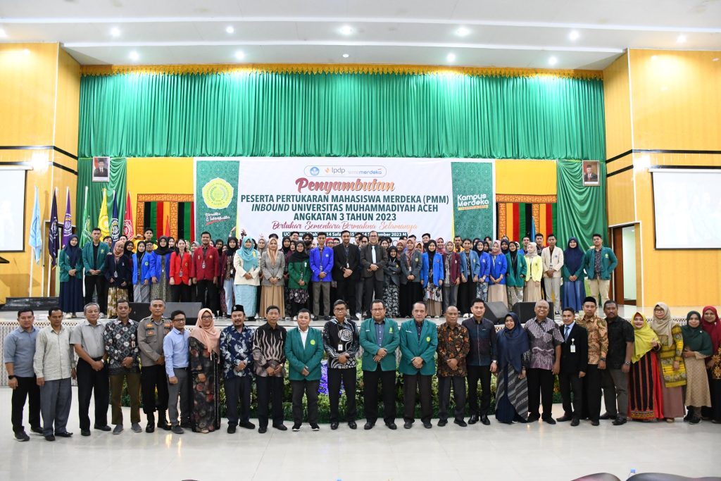 Rektor Universitas Muhammadiyah Aceh (Unmuha) Dr Aslam Nur MA beserta sivitas akademika sambut 109 mahasiswa Inboud dalam program Pertukaran Mahasiswa Merdeka (PMM) ke- 3 dari 63 Perguruan Tinggi (PT) diluar pulau Sumatera. Kegiatan penyambutan tersebut dilakukan bersama dengan 63 pimpinan PT se-Indonesia secara Hybrid.
